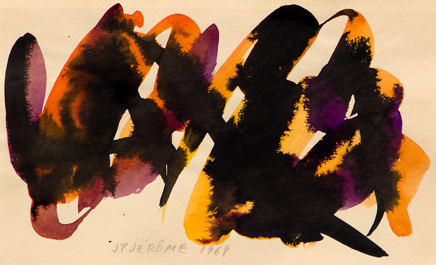 A painter, illustrator, and sculptor, Jean‑Paul Jérôme studied under Stanley Cosgrove at the École des beaux‑arts de Montréal until 1951. In 1955, he co‑signed the Manifeste des Plasticiens and became a founding member of the movement. After a brief period in Paris, from 1956 to 1958, where he kept company with Hans Hartung, Alberto Giacometti, Martin Barré, Jean Dewasne, and Victor Vasarely, among others, he returned to Canada and accepted a teaching position in studio arts at the very institution that had trained him, eventually leaving his position in 1972 to focus full‑time on his art. Jérôme was elected a member of the Royal Canadian Academy of Arts in 1978.